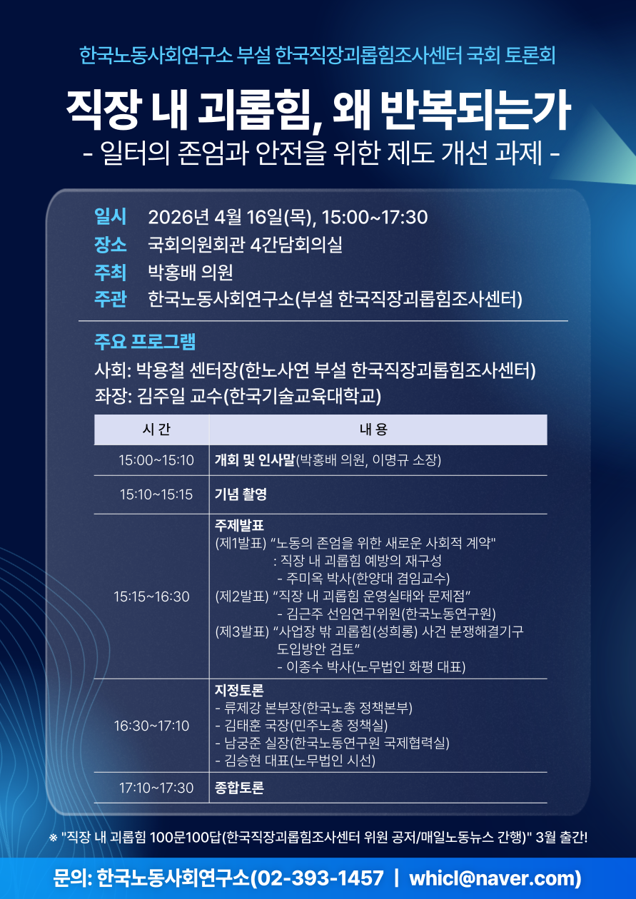 [한국노동사회연구소 부설 '한국직장괴롭힘조사센터' 국회 토론회]