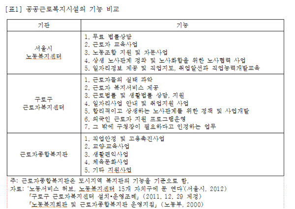 당초 계획은 2014년까지 25개 서울시의 모든 자치구로 확대한다는 것이었습니다. 그런데 기존 3개의 노동복지센터에 더해 작년에 노원에 노동복지센터가 새로 설립됐으나, 현재는 사업 확장이 보류된 상태입니다. 그 이유를 분석하기 위해 여러 논쟁이 있었는데, 각 자치구에서 위탁체를 선정하는 과정에서 발생한 노동단체 내부의 갈등이 핵심 요인으로 지적되는 것 같습니다.