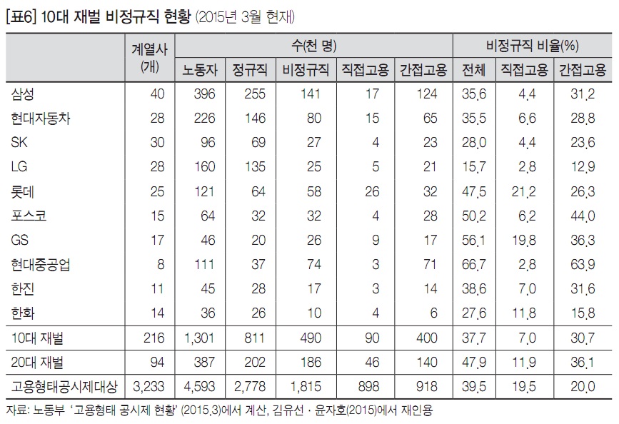 김유선(2015b), “대기업 비정규직 규모: 고용형태 공시제 결과(2015년 3월 현재)”, 한국노동사회연구소 이슈페이퍼 2015-8.