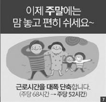 그렇다고 중소기업-저임금 노동자들의 현실도 외면되어서도 아니 된다. 기업의 지불능력 한계와 실질임금 감소로 생활수준의 위축을 초래하는 계층에 대한 지원제도가 마련되어야 한다. 지나치게 오래 관행화된 장시간-저임금 체제 개선을 촉진하기 위해서는 제도 시행을 첫 단계에서부터 정부의 적극적이고 획기적인 지원대책이 요구된다. 300인 이상 사업장에서 모범적인 사례를 축척하고 제도 정착이 원활히 이루어지게 되면 300인 미만 중소사업장에서도 제도정착에 속도를 낼 수 있을 것이기 때문이다.