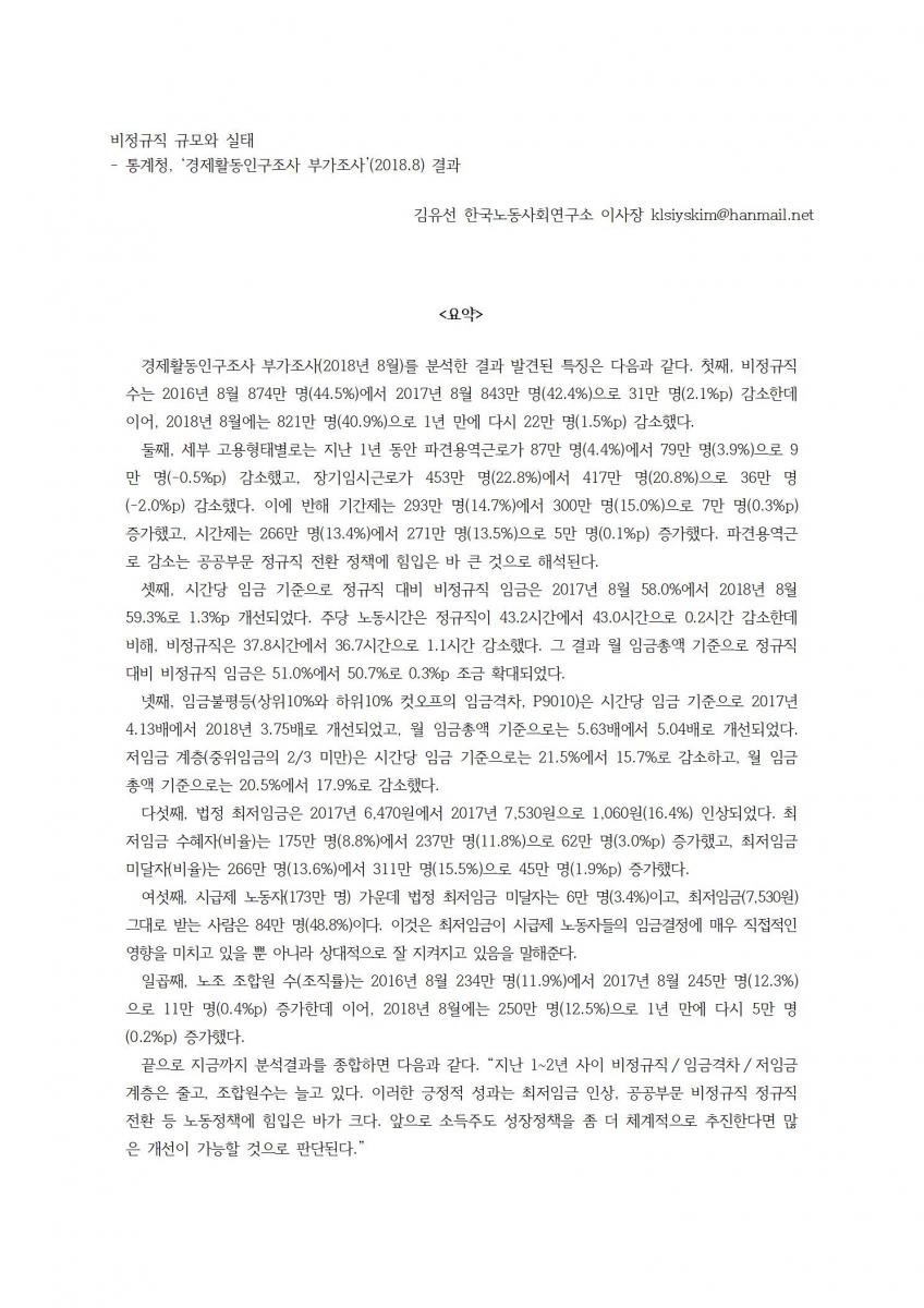 비정규직 규모와 실태